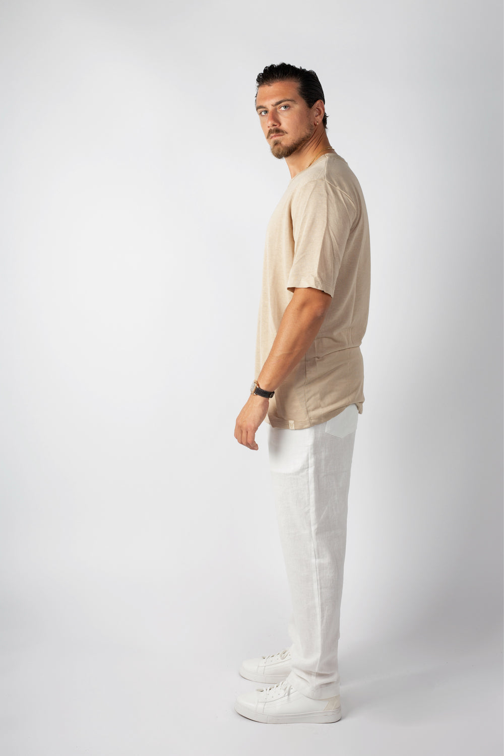 חולצה טי סריג דמוי פשתן בגזרת מידסייז בגוון נס קפה