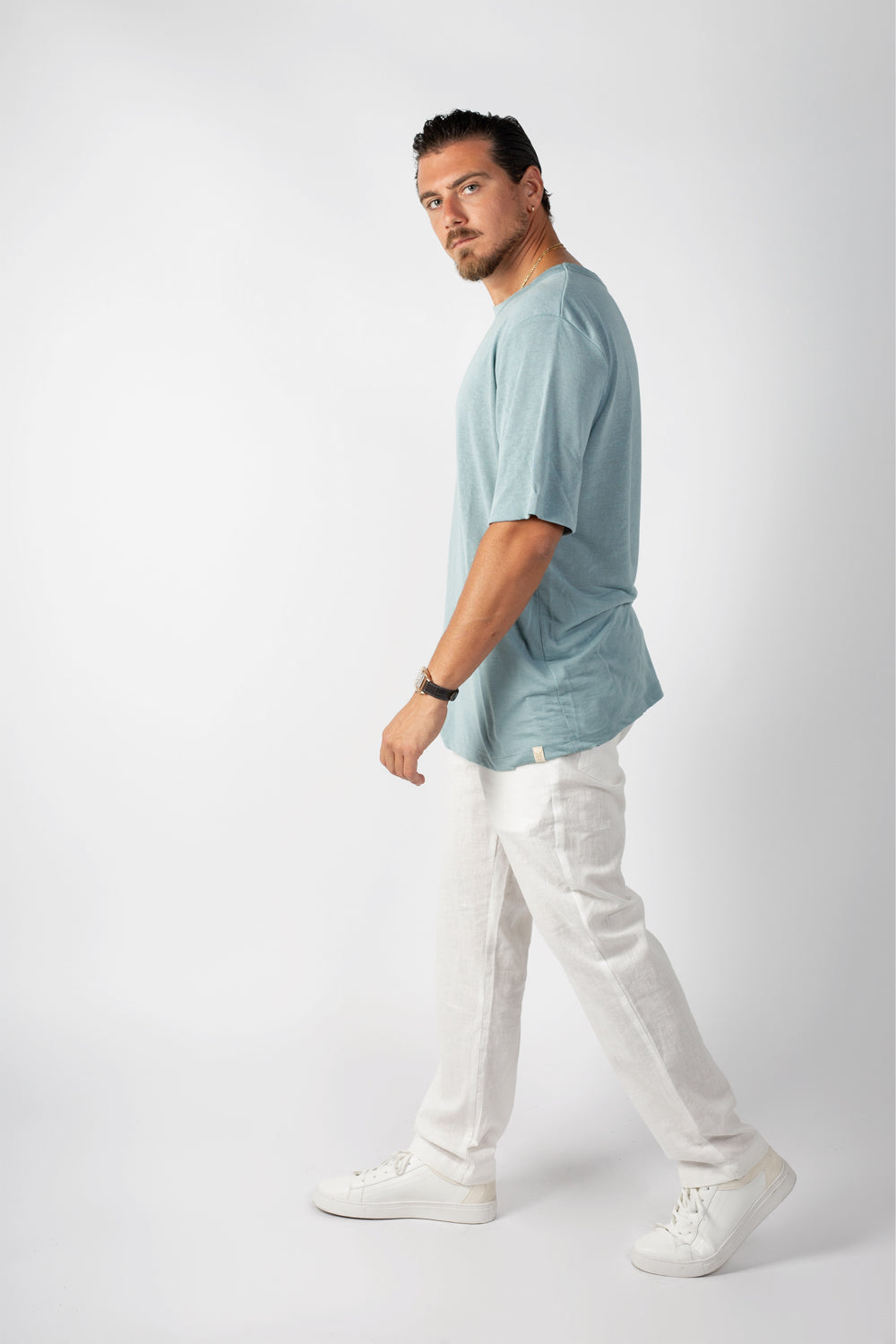 חולצה טי סריג דמוי פשתן בגזרת מידסייז בגוון טורקיז