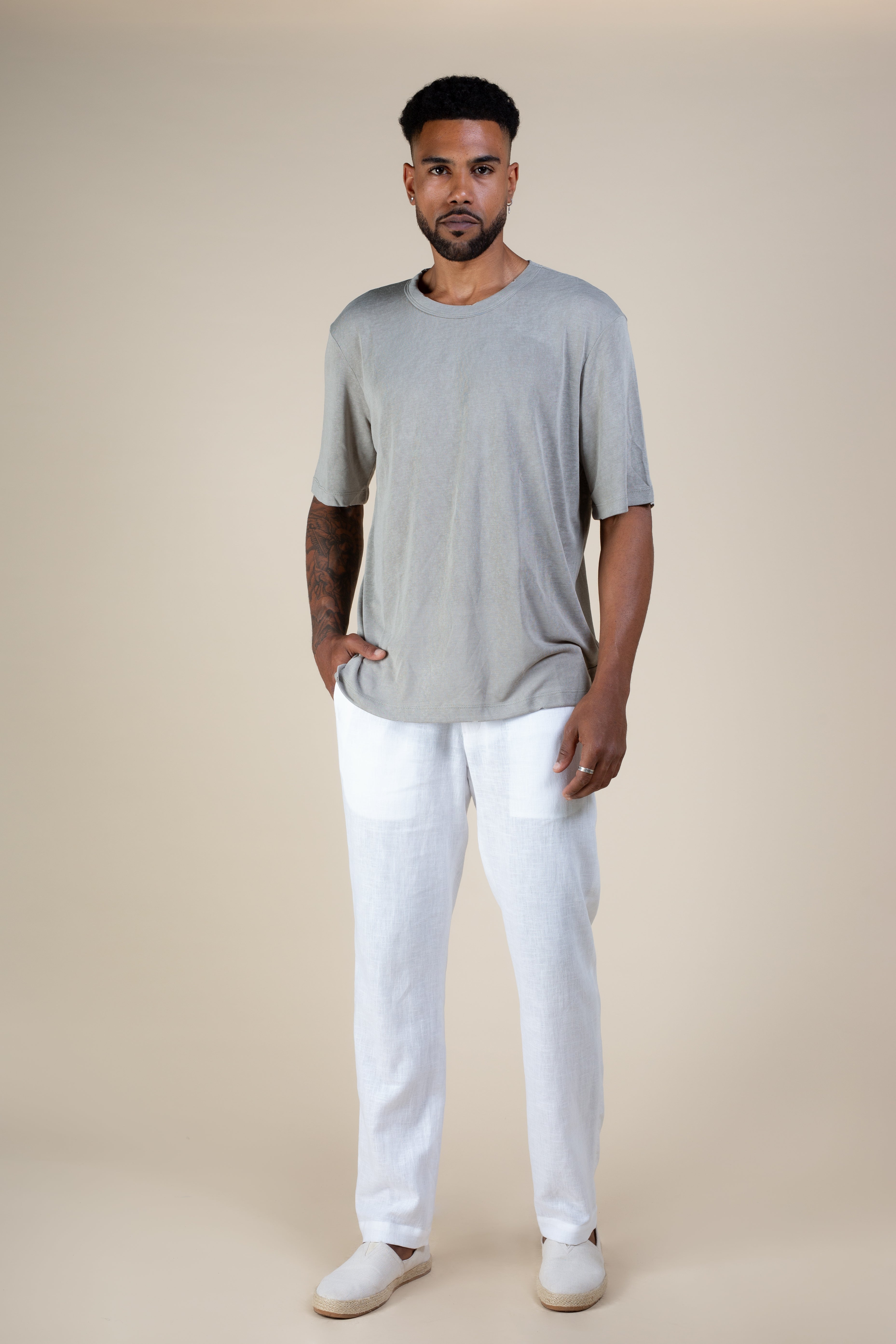 חולצת סריג פשתן בגוון ירוק זית