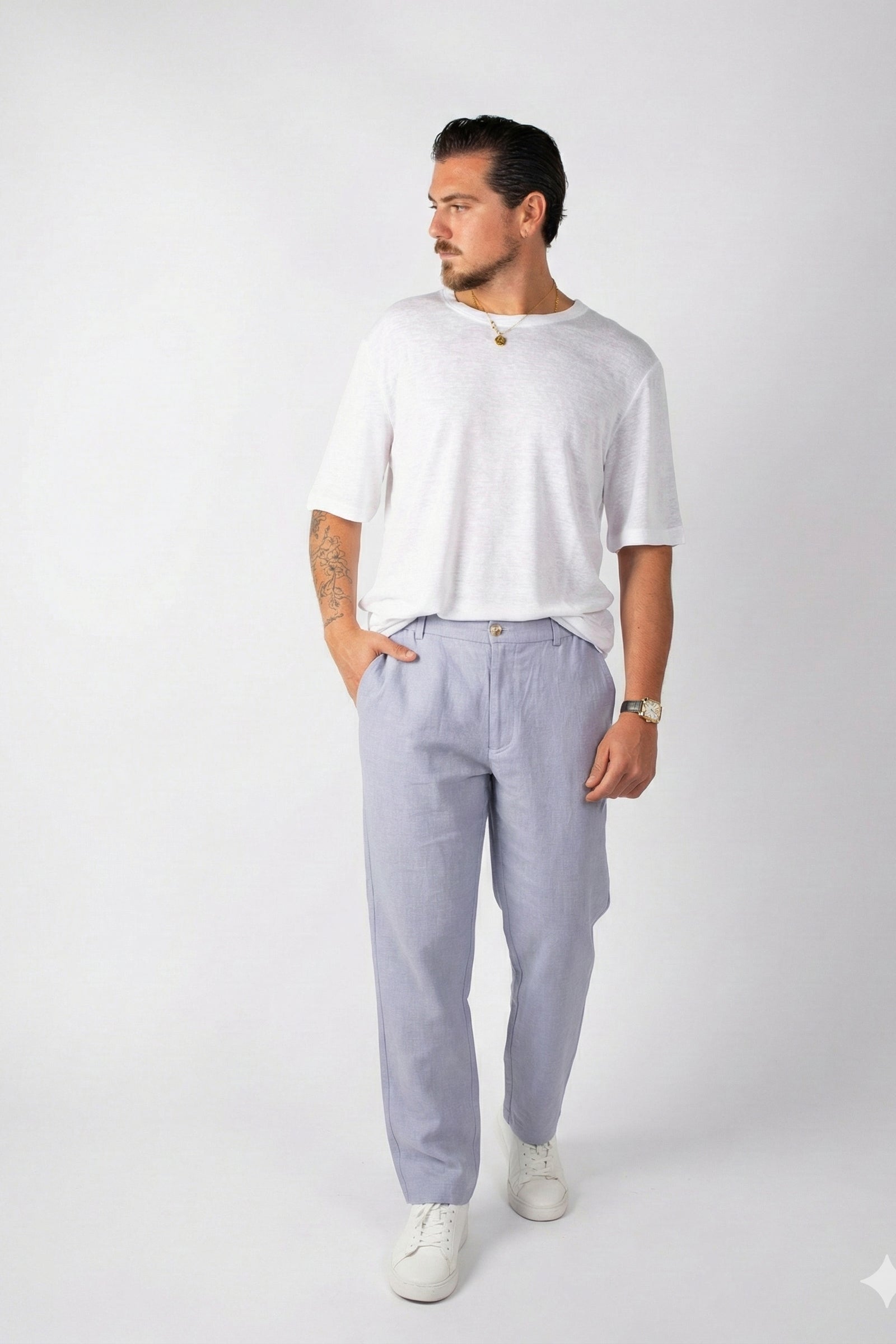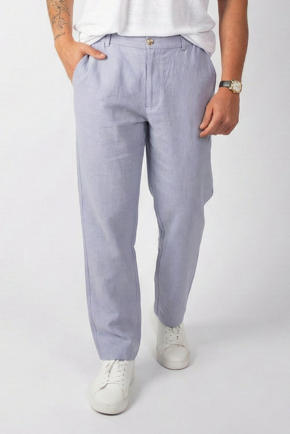 מכנס פשתן קלאסי תכלת