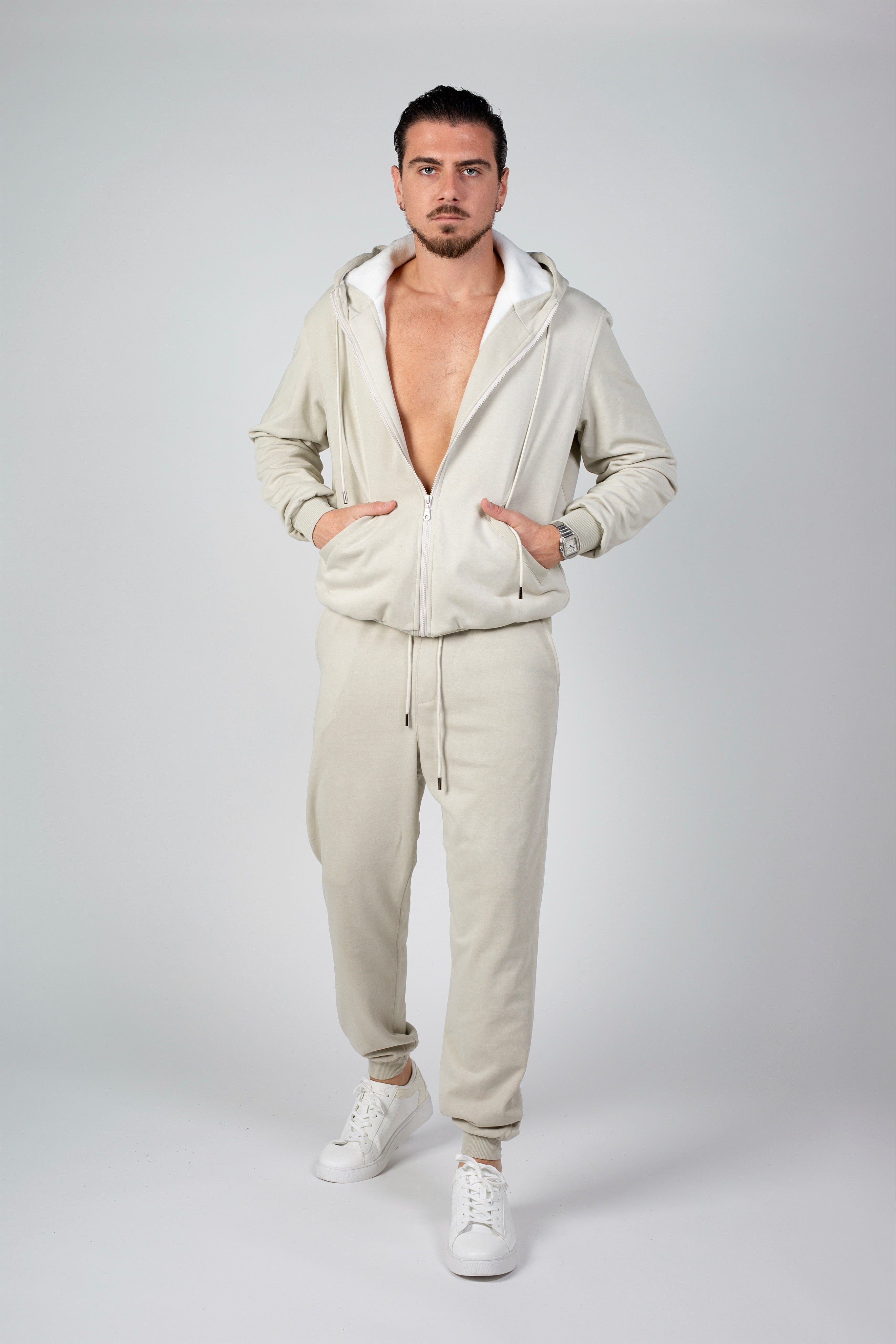 מכנס בגזרת טריינינג עם שרוך בצבע אבן