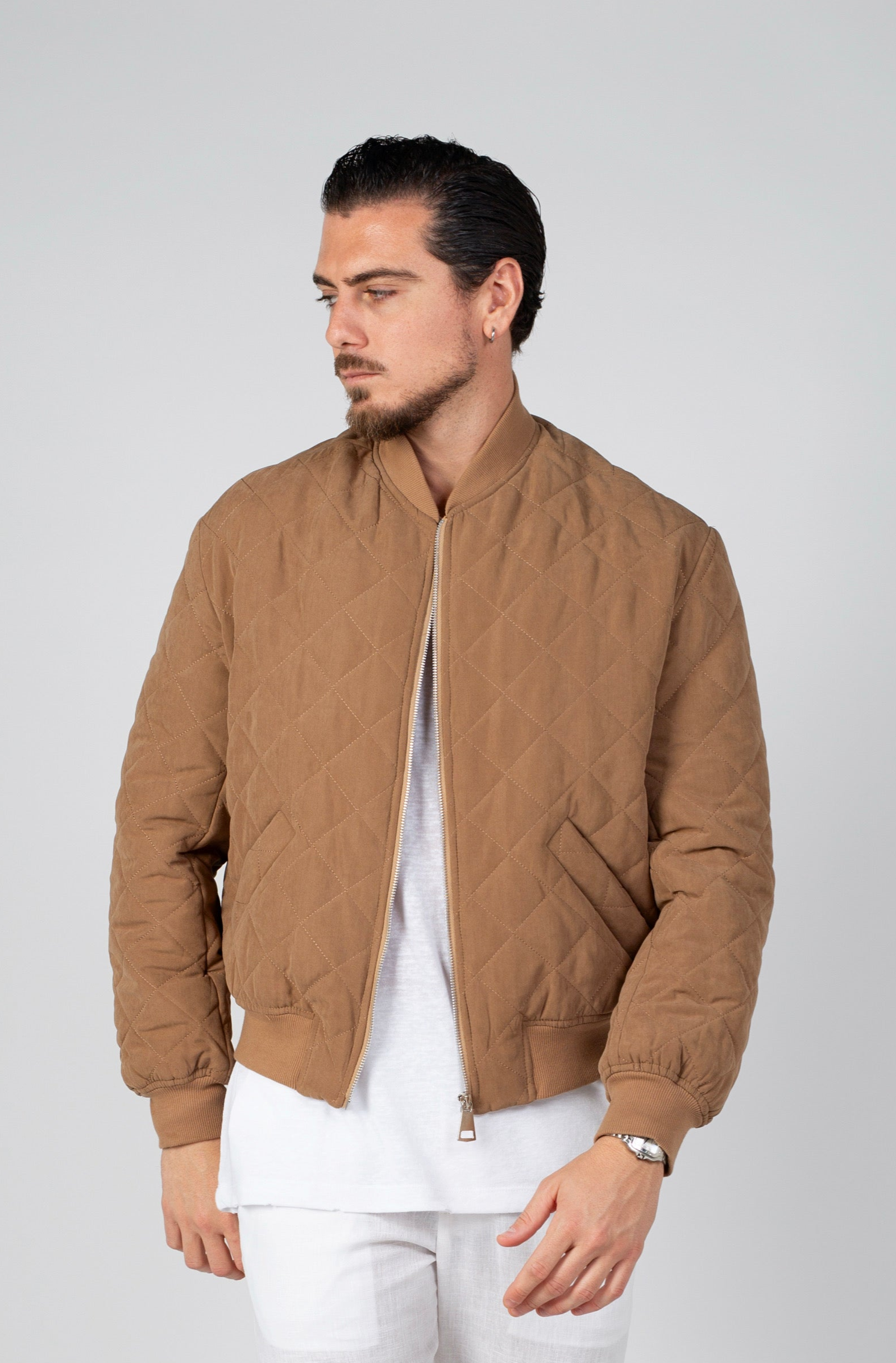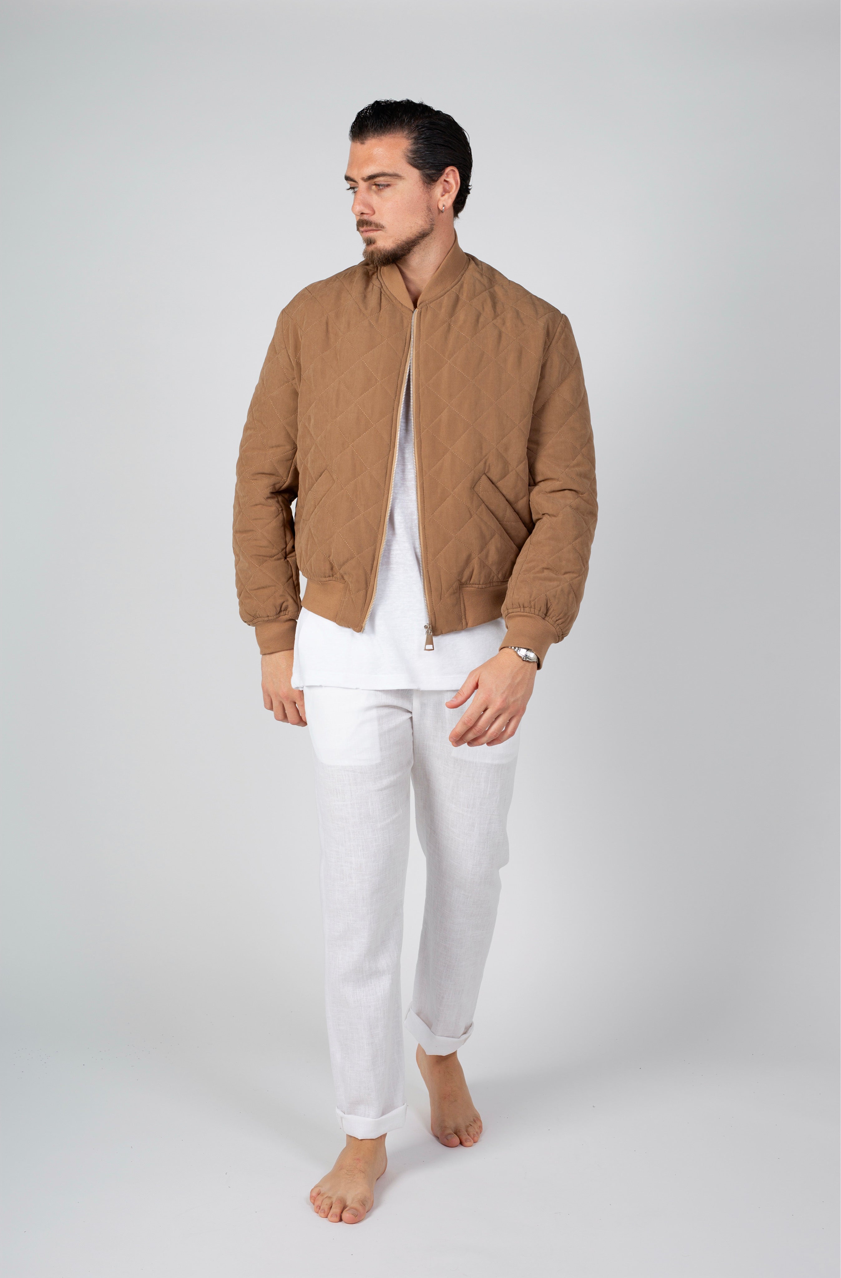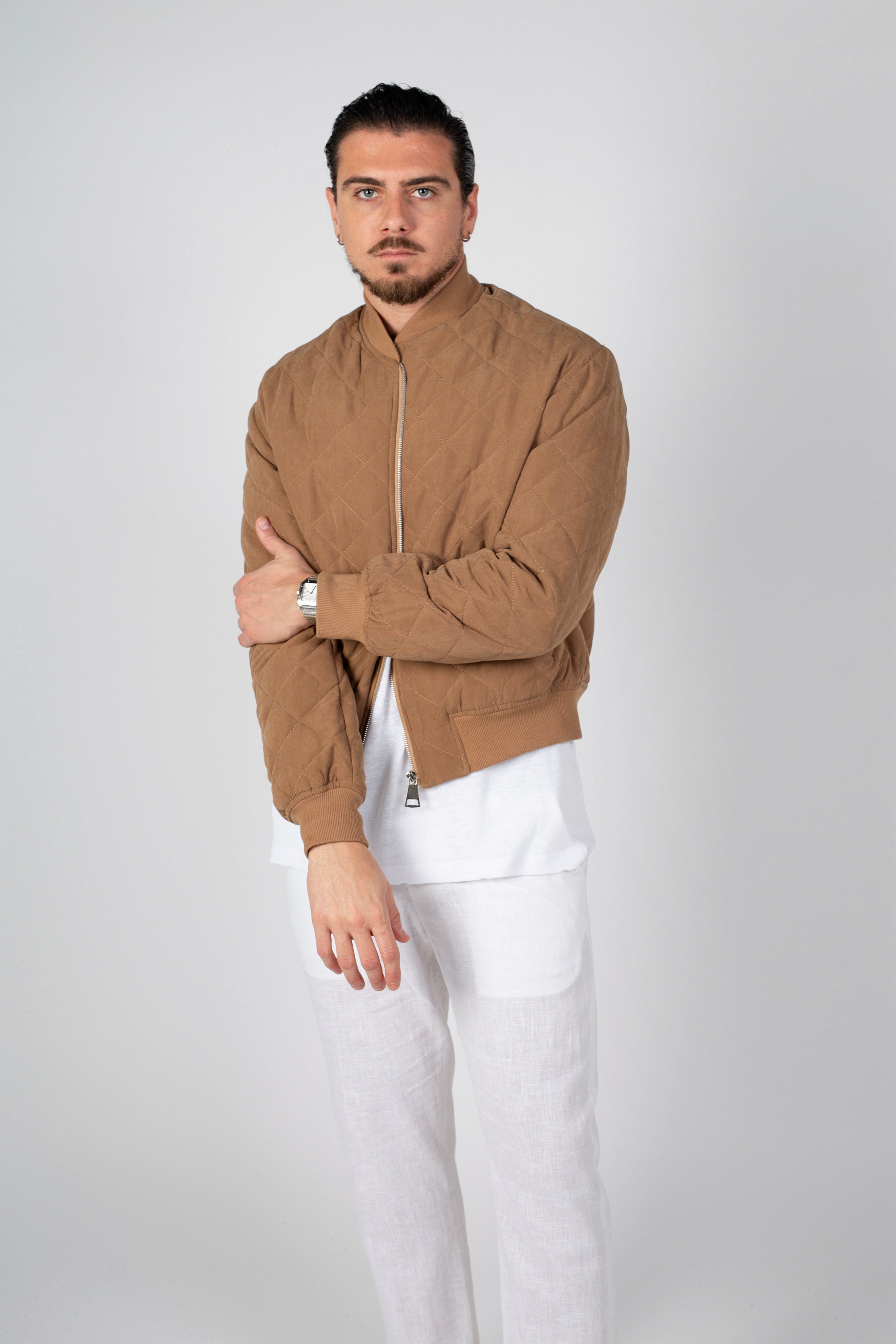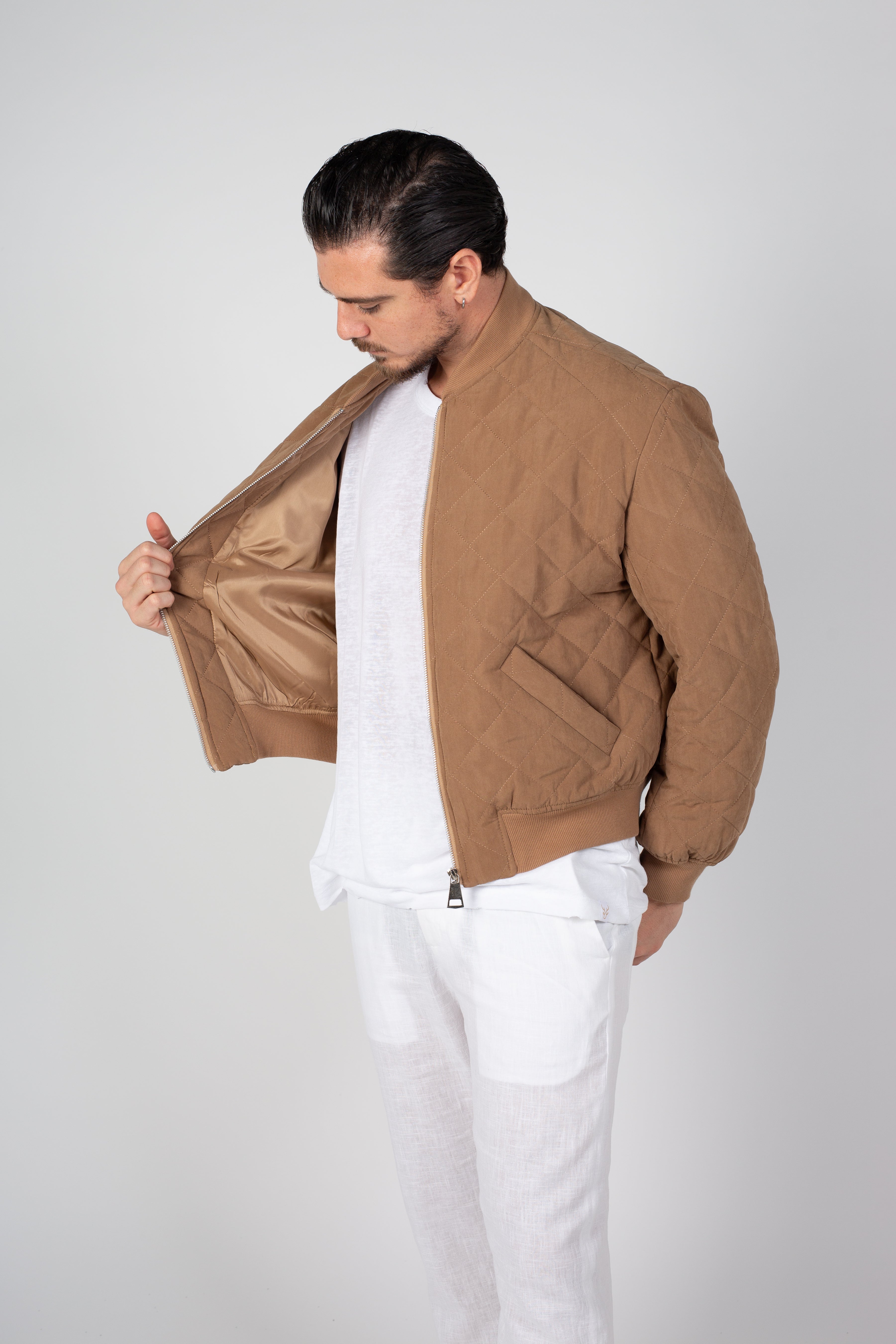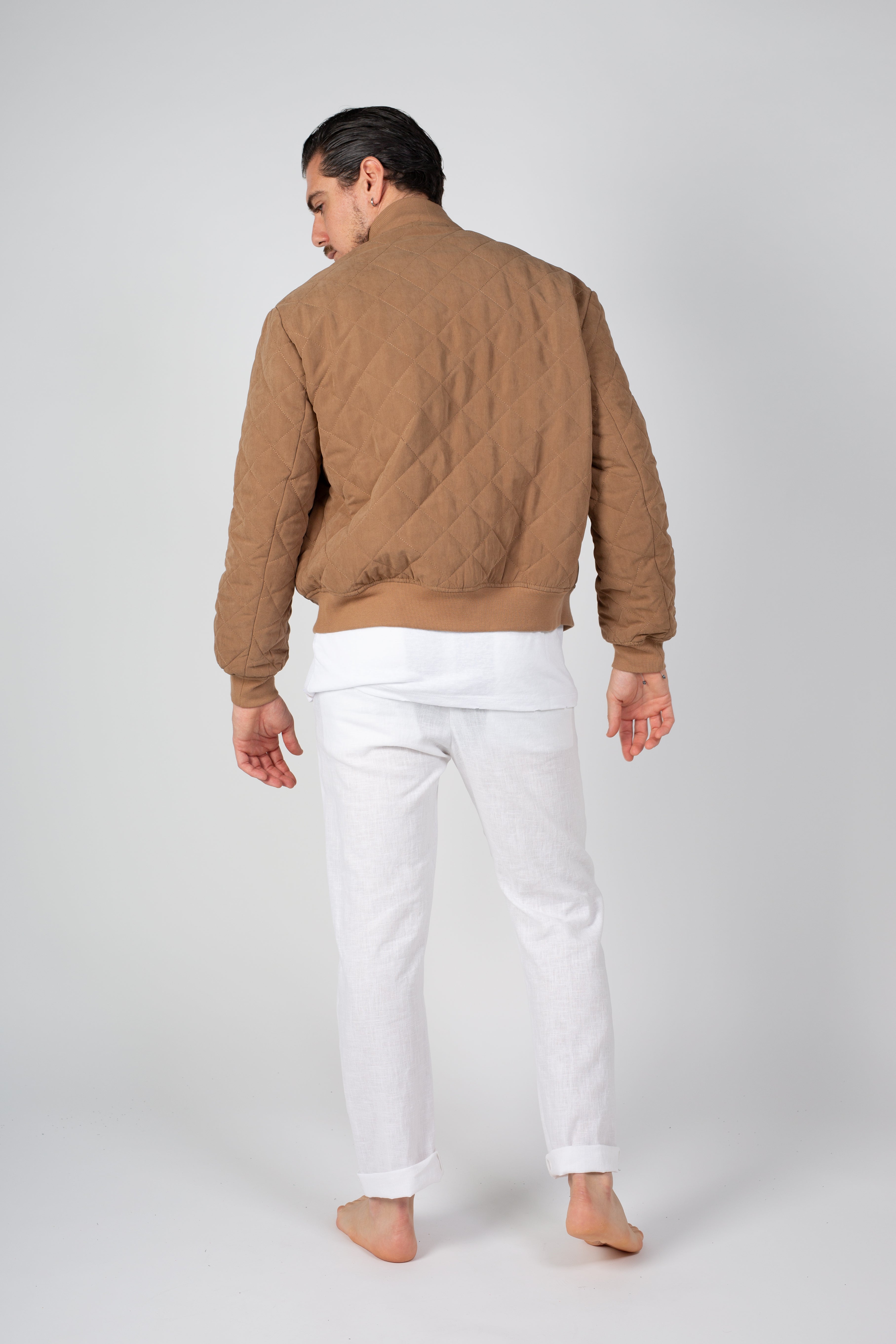 ג"קט בגזרת בומבר מבד קווילט בגוון מוקה