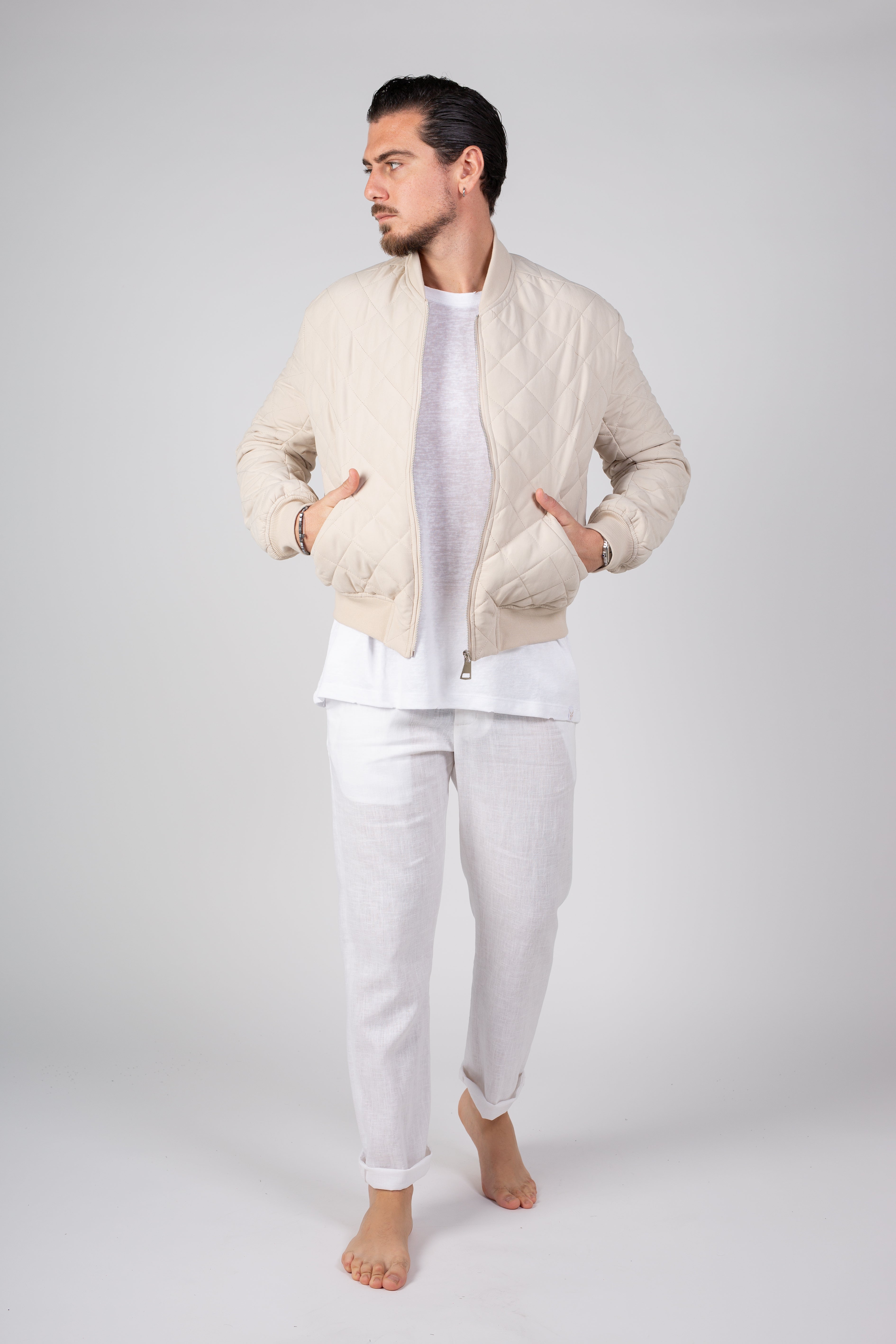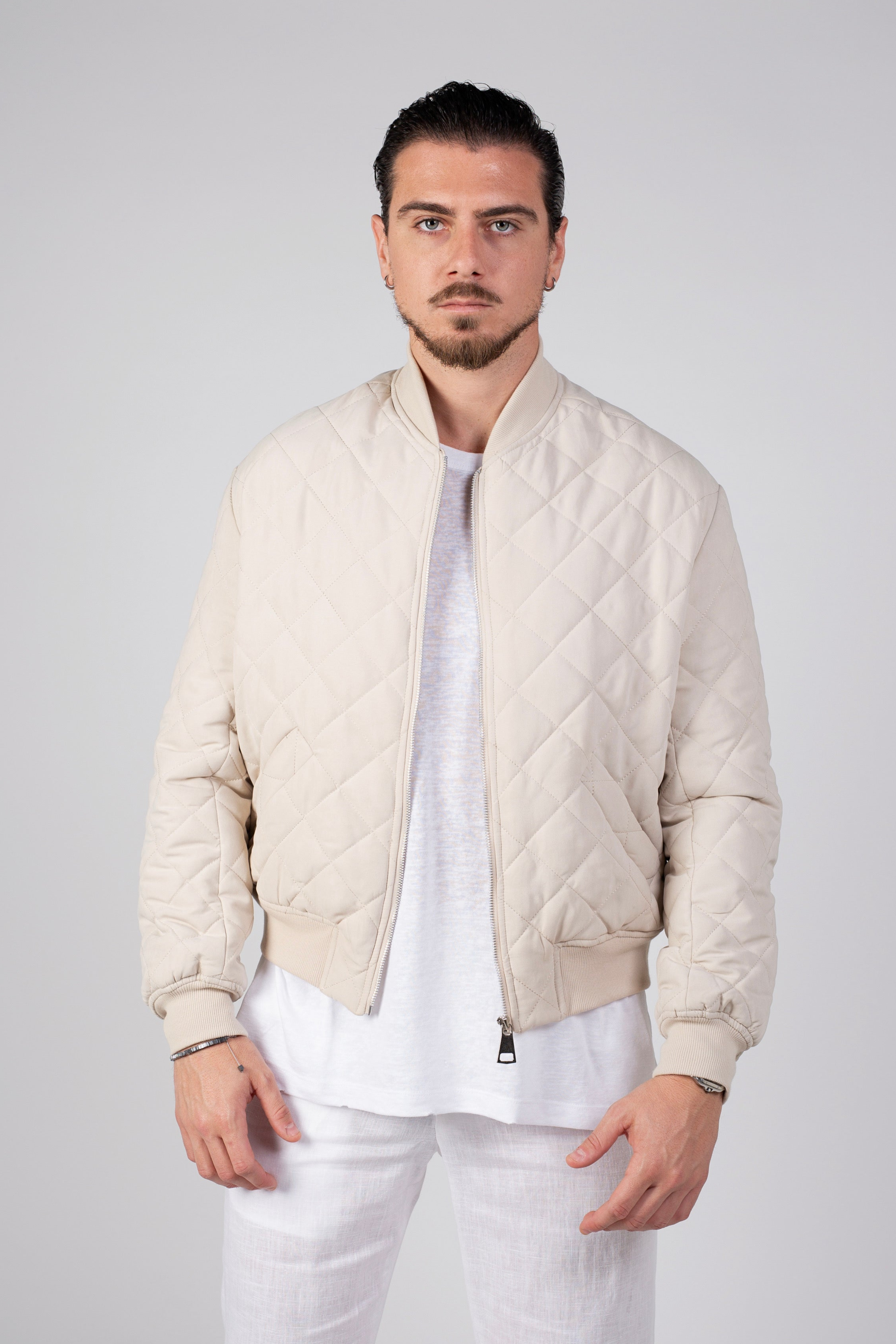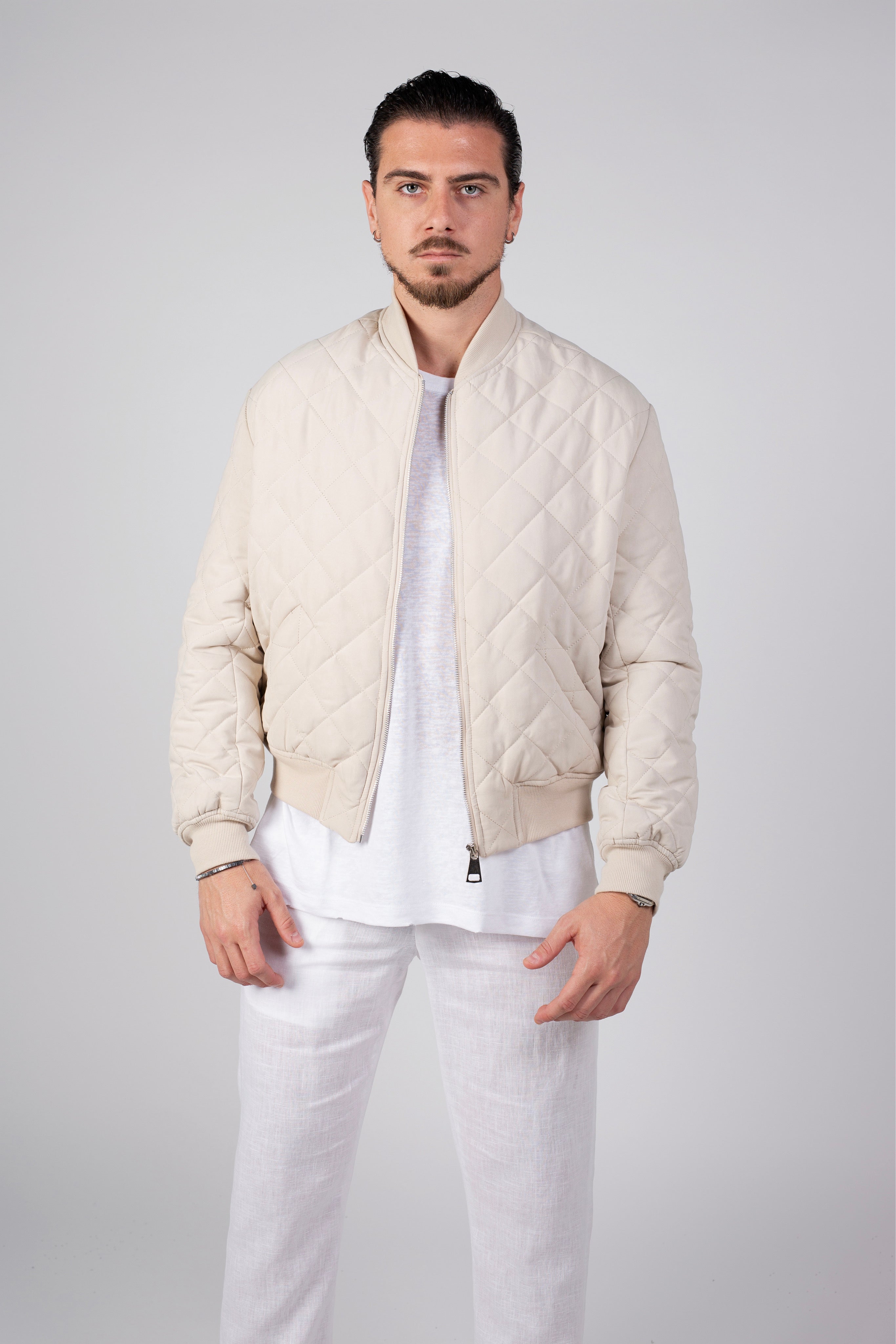 ג"קט בגזרת בומבר מבד קווילט בגוון קרם