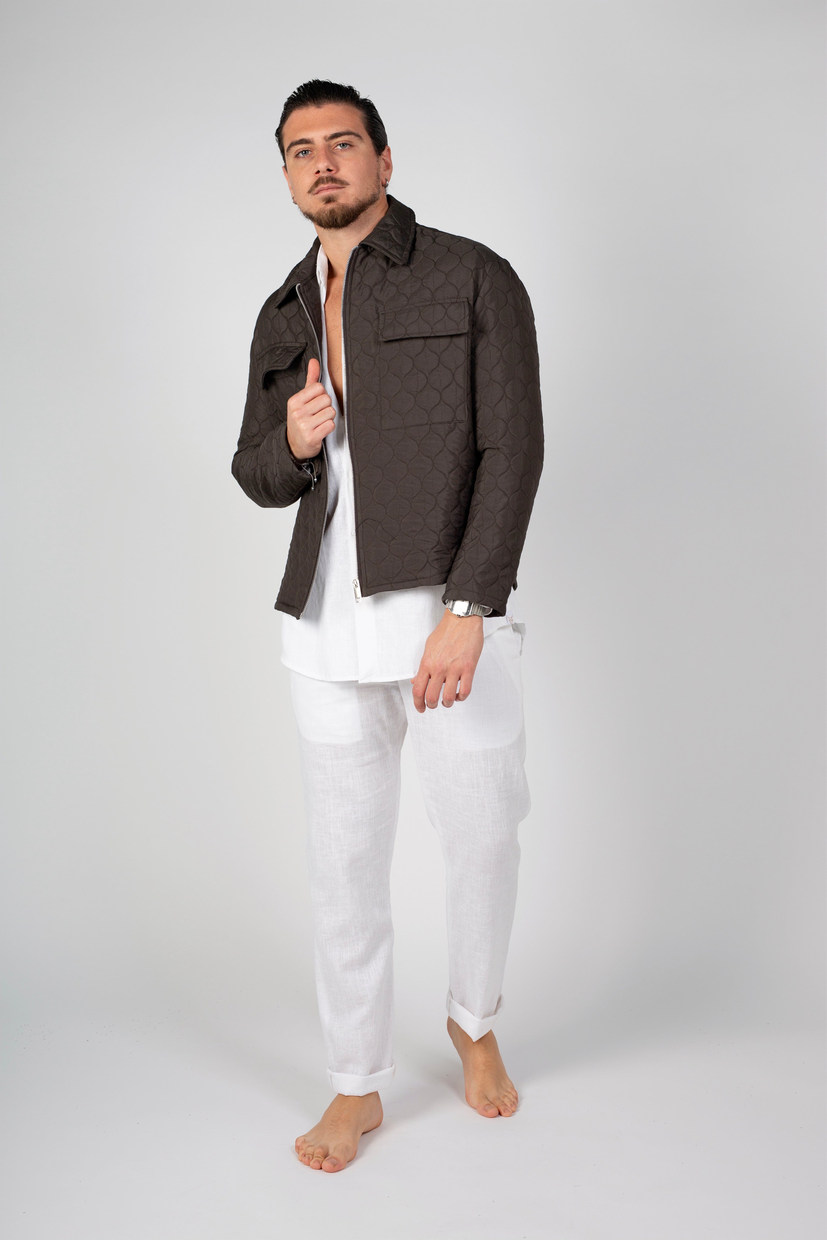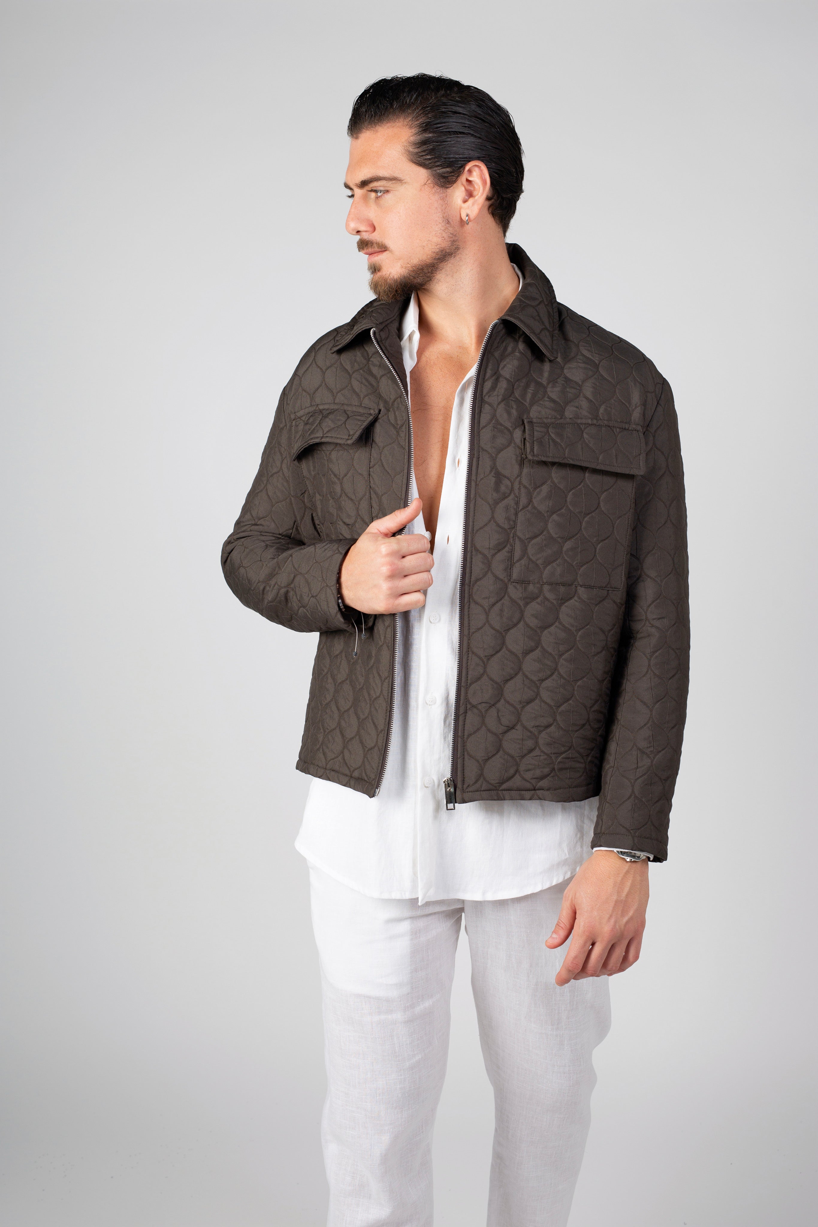 ג"קט בגזרת אוברסייז מבד קווילט עם קלפות בגוון חום