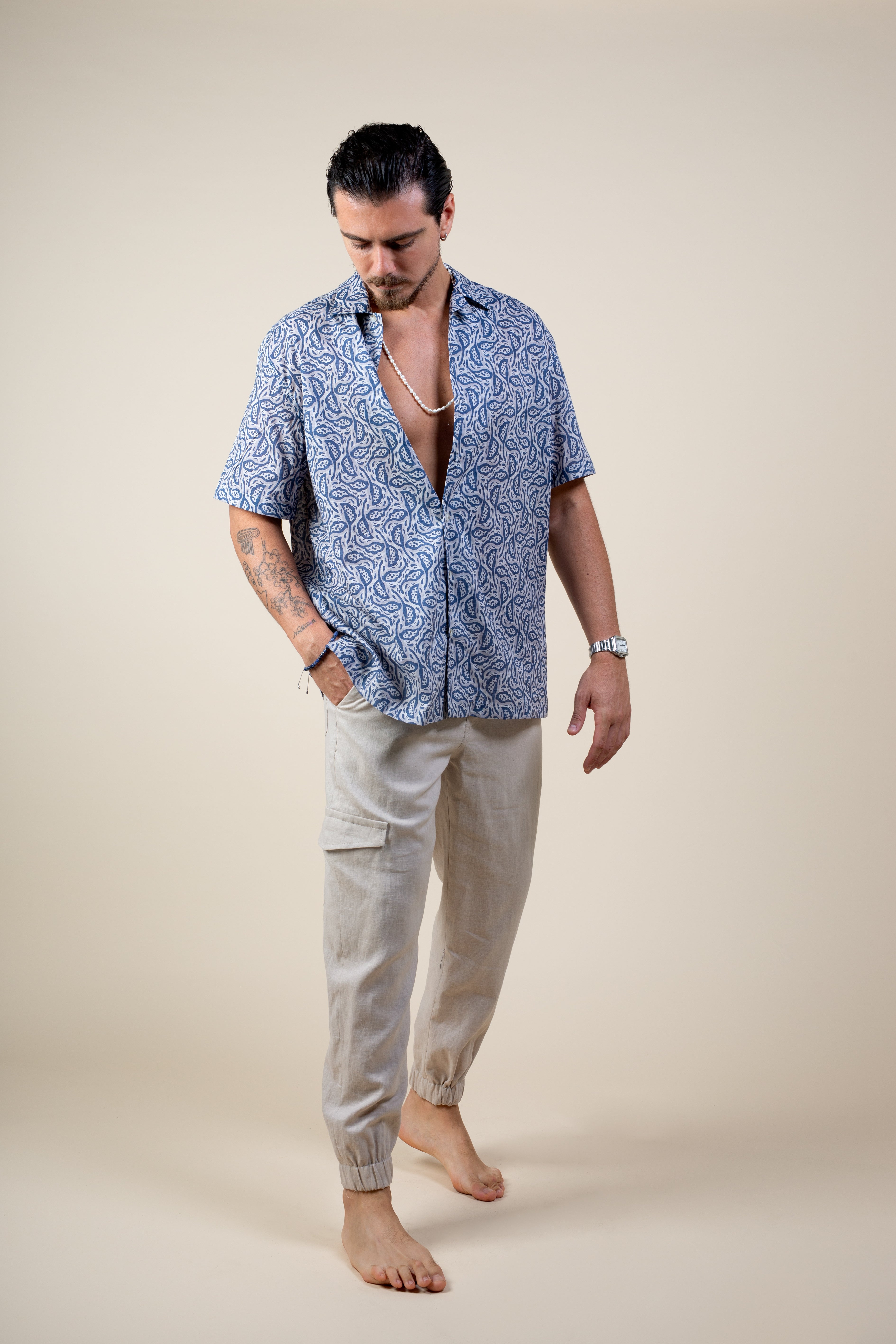 חולצה מכופתרת שרוול קצר עם צווארון בגזרת אוברסייז