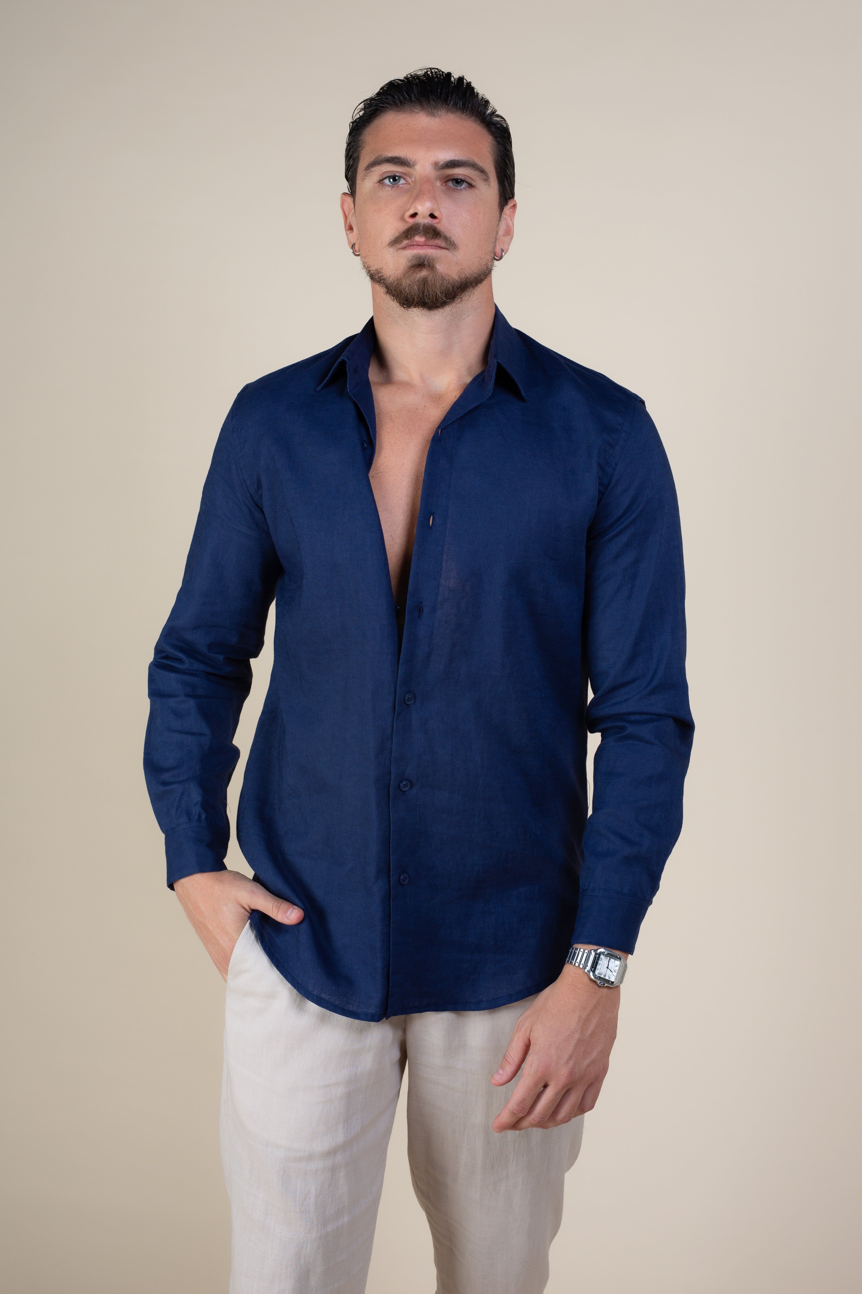 חולצה מכופתרת 100% פשתן סלוניקי נייבי